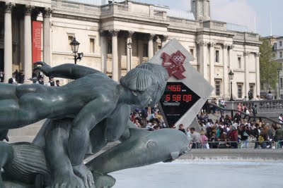 Next we walked up Pall Mall to Trafalgar Square, where we saw the hideous Olympic countdown clock and the monument to Nelson.
